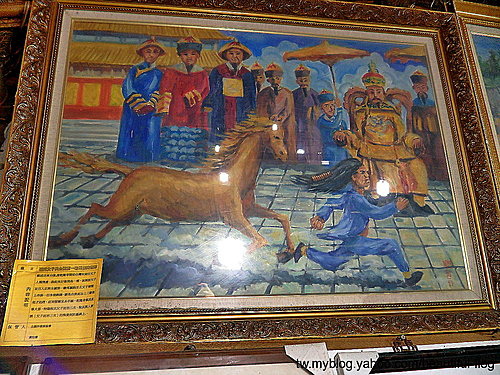 乾隆皇帝聽說他很會跑,就叫他去北京和駿馬比賽跑,駿馬先加三鞭之後,他才起跑,沒想到跑到終點的時候,他還贏駿馬足足有50來尺。