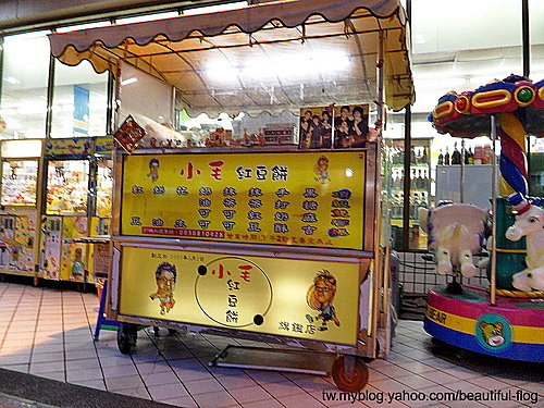 吃完,就在旁邊的超市前的小毛紅豆餅的攤子買會爆漿的紅豆餅。