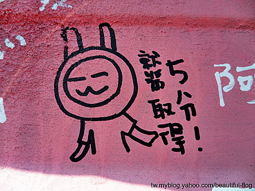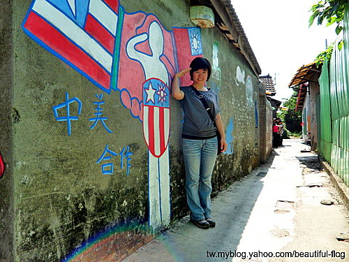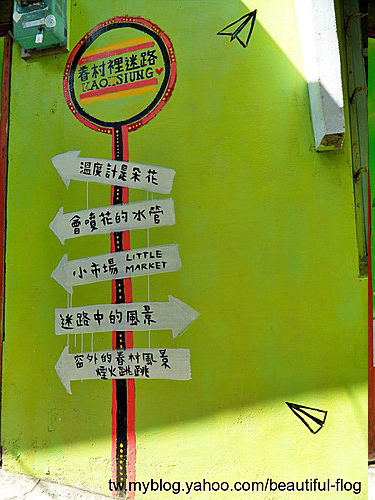 這個眷村本來是一個很普通的,快要被拆除的眷村,有兩個愛塗鴉的文藻女學生知道之後,想說既然要拆了,不如就讓她們塗鴉吧!