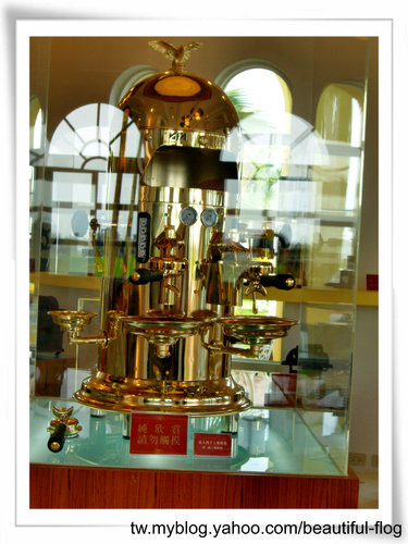 拍完照,還進去一樓裡面參觀,一樓除了讓客人用餐,還展示了許多咖啡用具,像下圖這台咖啡機,據說要價不斐。